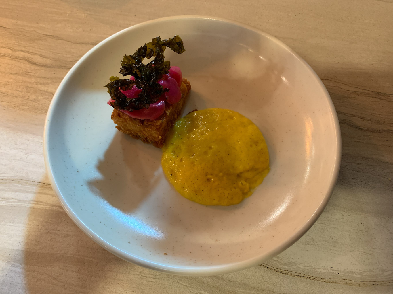 Zur Halbzeitsfeier meiner Reise durch die Anden ein veganes Gourmet-Essen bei Ali Pacha (Universum der Planzen auf Aymara). La Paz, Bolivien